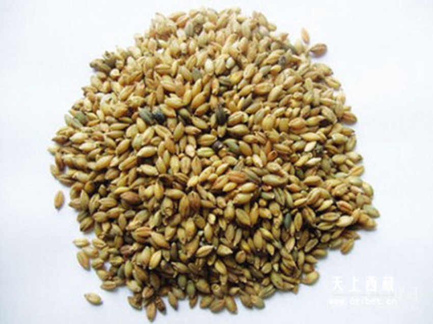 糌粑曾是藏族的主食,形似內地的炒面,原料以青棵為主。做法是選好青稞或豌豆、燕麥后淘凈,晾干,炒熟,磨成面粉,磨好后稱為糌粑面,磨得越細越好。吃糌粑時,根據(jù)各自愛好,還可以放些奶渣或白糖,然后加酥油茶或清茶,中指按逆時針方向反復揉拌均勻,再用手捏成團狀,直接用手往口里送。也有用青稞酒調糌粑的,做出的“粑”甘甜醇香,別有風味。