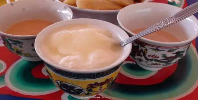 吃完酥油果子,再來(lái)一碗人參果藏式酸奶吧。酸奶是牦牛奶發(fā)酵而成,而人參果則是高原的寶貝之一,營(yíng)養(yǎng)價(jià)值維生素含量極高。人生果是甜甜的,酸奶是極酸的。搭配在一起是清爽又可口的下午茶不二選擇。