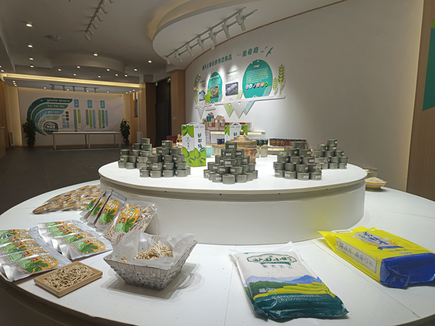 密奇奇公司大廳展臺(tái)上琳瑯滿目的有機(jī)產(chǎn)品。