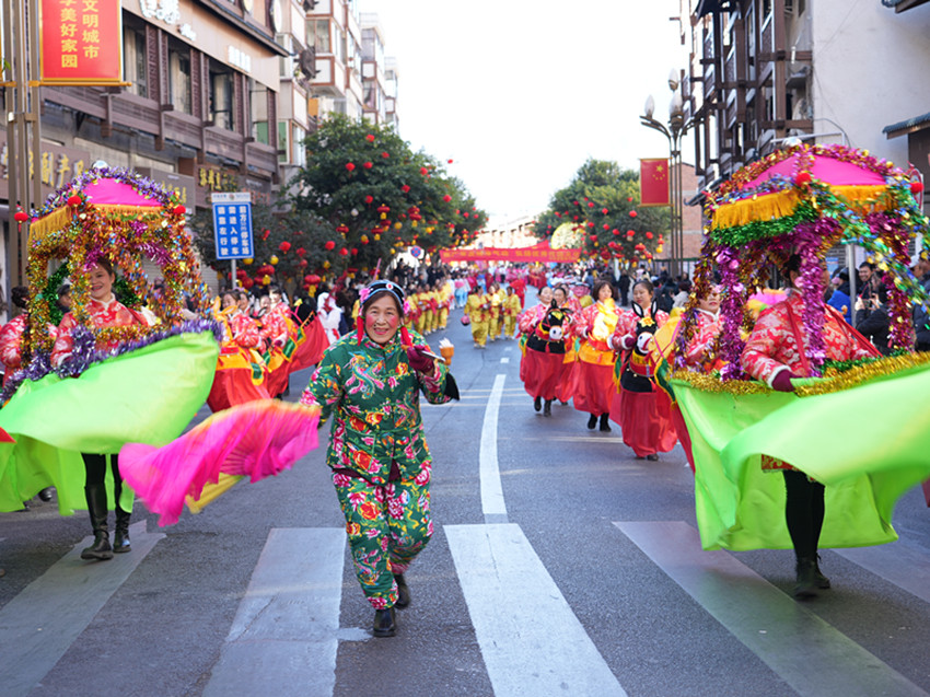隨著悠揚(yáng)的弦胡聲響起,備受期待的“千人弦子鍋莊”震撼上演。來自夏邛鎮(zhèn)、地巫鎮(zhèn)、竹巴龍鄉(xiāng)等多個(gè)鄉(xiāng)鎮(zhèn)的群眾演員們輪番上場,他們身著巴塘傳統(tǒng)民族服飾,踩著節(jié)拍不斷律動(dòng),含胸、顫膝、點(diǎn)踢、三步一撩,一步一靠,婀娜輕盈如行云流水;半圓、橢圓、長圓與肢體撩動(dòng)飛舞,一個(gè)個(gè)深情的圓意蘊(yùn)廣遠(yuǎn),體現(xiàn)著天人合一的動(dòng)態(tài)美。不少游客群眾被吸引加入其中,一圈圈、一層層,大家縱情歌舞、歡騰跳躍,沉浸在非遺盛況中。在觀看演出后,來自河南的游客劉女士內(nèi)心十分雀躍:“我今天專門過來看表演,現(xiàn)場非常熱鬧,每一個(gè)節(jié)目都非常精彩,極具民族特色和觀賞性,讓我大飽眼福。民族的就是世界的,我們國家有這么多優(yōu)秀燦爛的民族文化,這是我們的驕傲,要更好地傳承和發(fā)揚(yáng)好。今天的活動(dòng)非常有意義,所有參演人員十分投入、熱情滿滿,從載歌載舞中看到了巴塘群眾對幸福生活的表達(dá),感受到了巴塘濃濃的年味?!币磺右磺?,現(xiàn)場歌舞如潮,歡呼聲叫好聲此起彼伏,匯成一片歡樂的海洋。此次弦子鍋莊展演在保持傳統(tǒng)弦子鍋莊舞曲風(fēng)格的基礎(chǔ)上,還創(chuàng)造性地融入了民族團(tuán)結(jié)、群眾生活等內(nèi)容,用鄉(xiāng)音唱出群眾心中的喜悅,用舞蹈跳出對美好生活的向往。在傳承保護(hù)民族文化的同時(shí),又賦予弦子鍋莊舞新時(shí)代文化內(nèi)涵,充分展現(xiàn)巴塘中國民間弦子之鄉(xiāng)深厚的歷史文化和多彩多姿的民俗風(fēng)情。