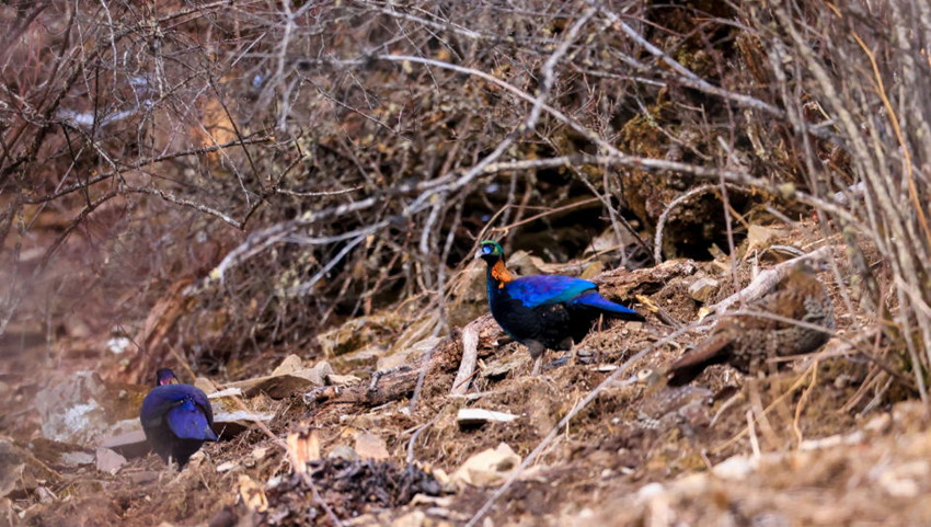 “它們在那里待了有一個(gè)小時(shí)左右,后來太陽出來,它們又飛到對面的山上去了?!敝烊纬f,當(dāng)時(shí),十余只綠尾虹雉離開時(shí),從我們頭上飛過,它們的翅膀劃破空氣聲都聽得清清楚楚,非常激動。